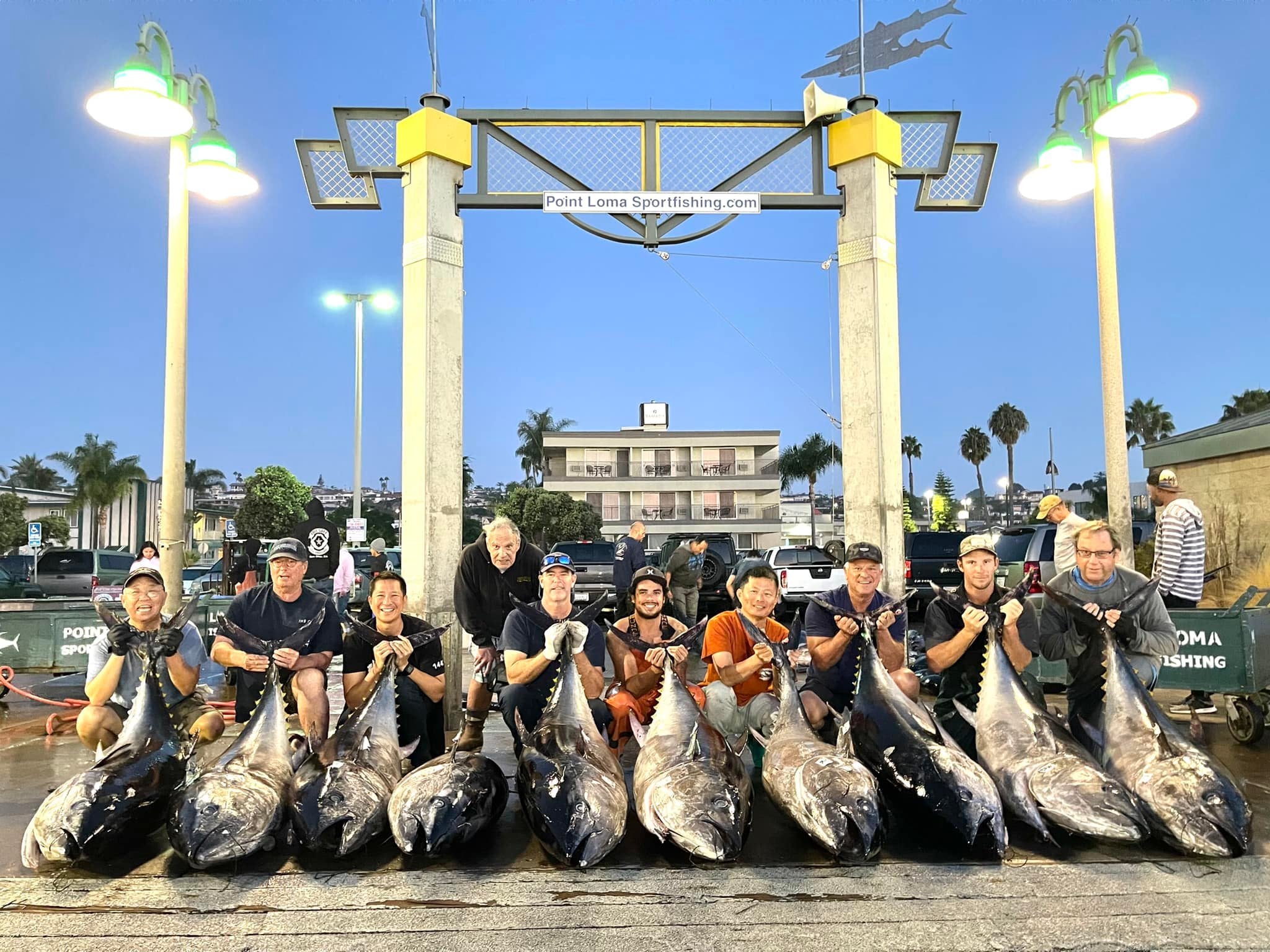 Departs 21:00, traveling overnight to reach the grounds by gray light. Expect 6–8 hours of fishing for bluefin, yellowfin, dorado, and yellowtail. Coronado yellowtail possible with passports/visas.